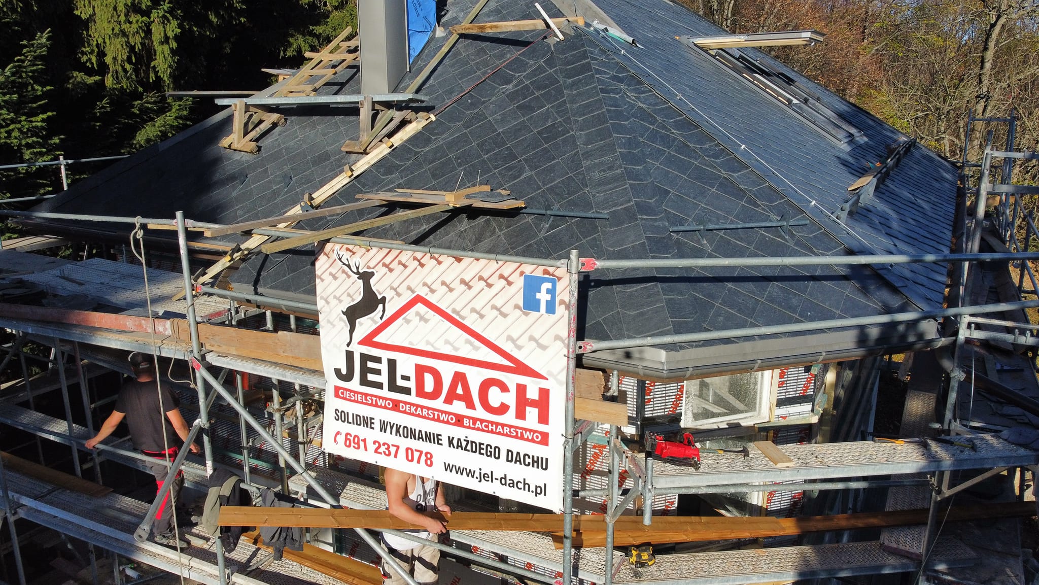 Specjalizujemy się również w sprzedaży i profesjonalnym montażu łupka naturalnego na dachach i elewacjach.